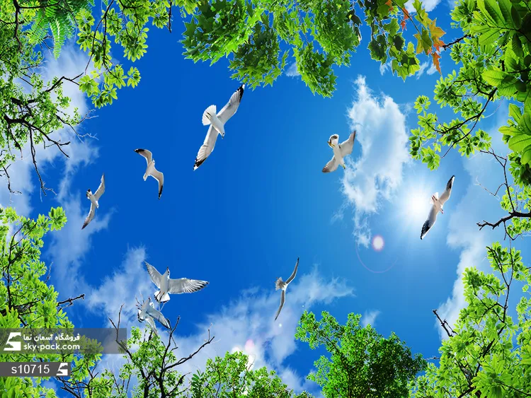سقف کاذب تصویردار طرح آسمان و پرندگان
